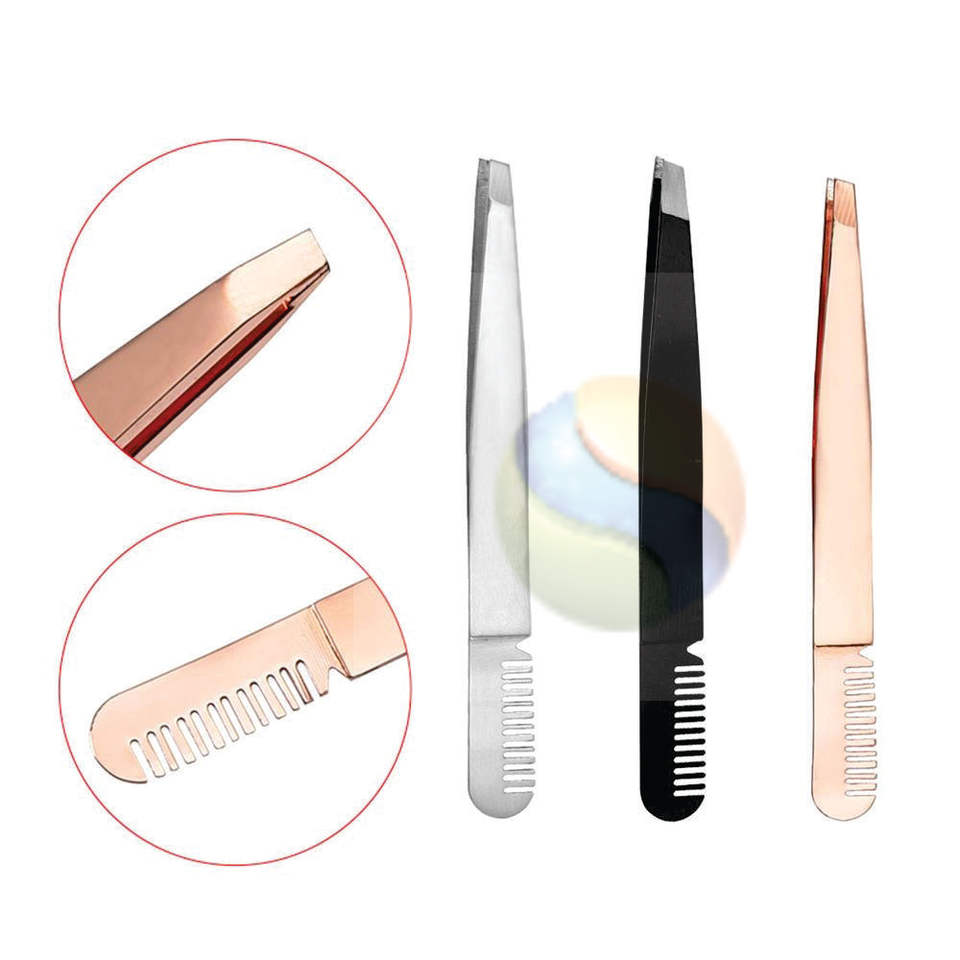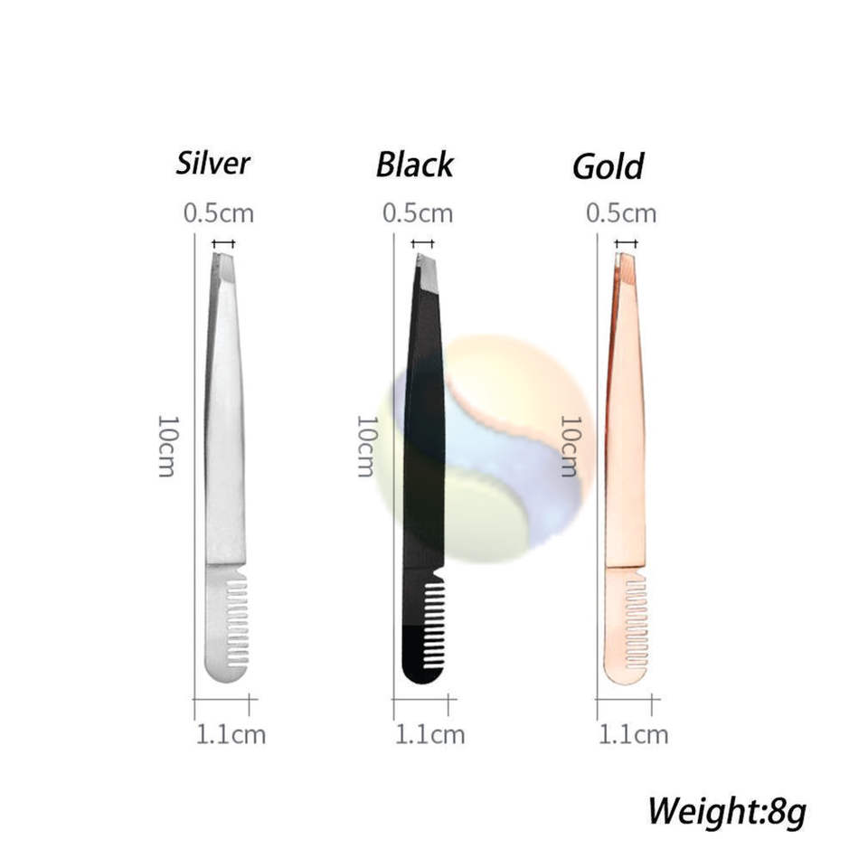 Durable Stainless Steel Eyebrow Comb Tweezers for Makeup Grooming Professional Eyebrow Trimming Comb with Built in Tweezers