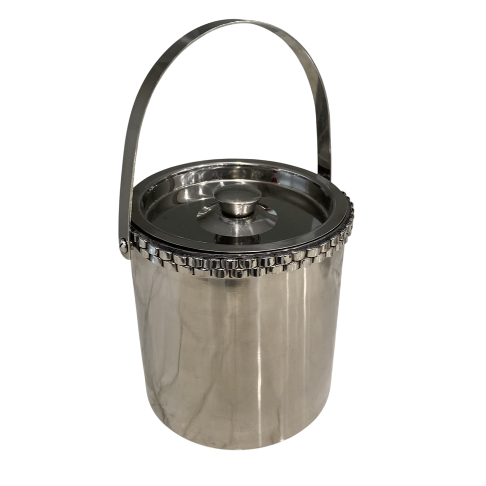 Seau à glace en acier inoxydable durable avec motif à points en relief, refroidisseur à vin en métal isolé avec couvercle et poignée de transport en promotion