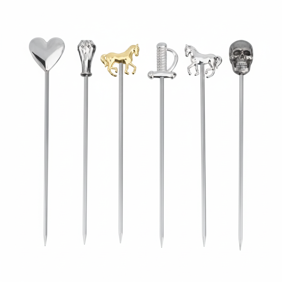 Piques à olives durables en acier inoxydable, brochettes réutilisables, outils de bar élégants et luxueux, ensemble de cuisine pour fêtes, compatibles lave-vaisselle, sans danger pour les aliments, utilisables au four