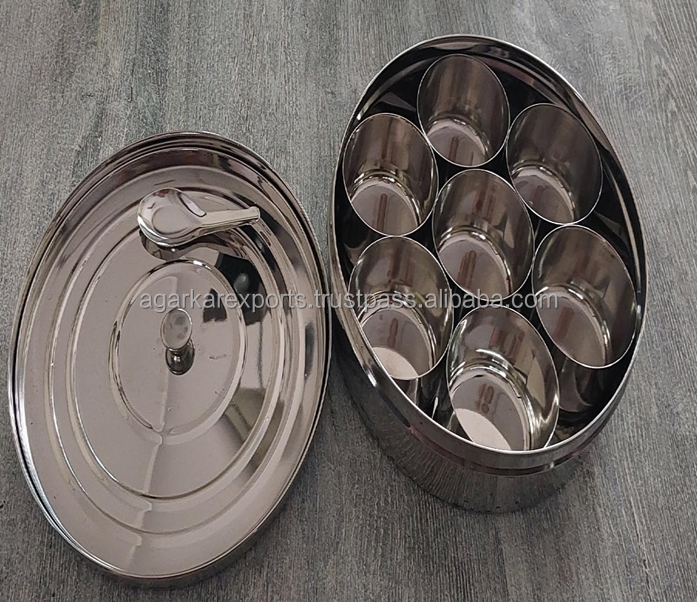 Contenu du paquet:1 Boîte Masala + 7 Récipients + 1 Cuillère et 1 Plaque en Acier.