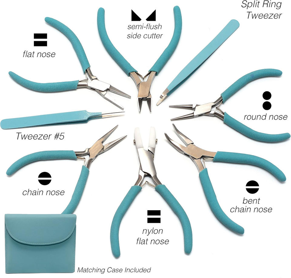 Ensemble de pinces durables en acier inoxydable pour la fabrication de bijoux 8 pochettes assorties Kit de bricolage pour bijoux colliers et bracelets