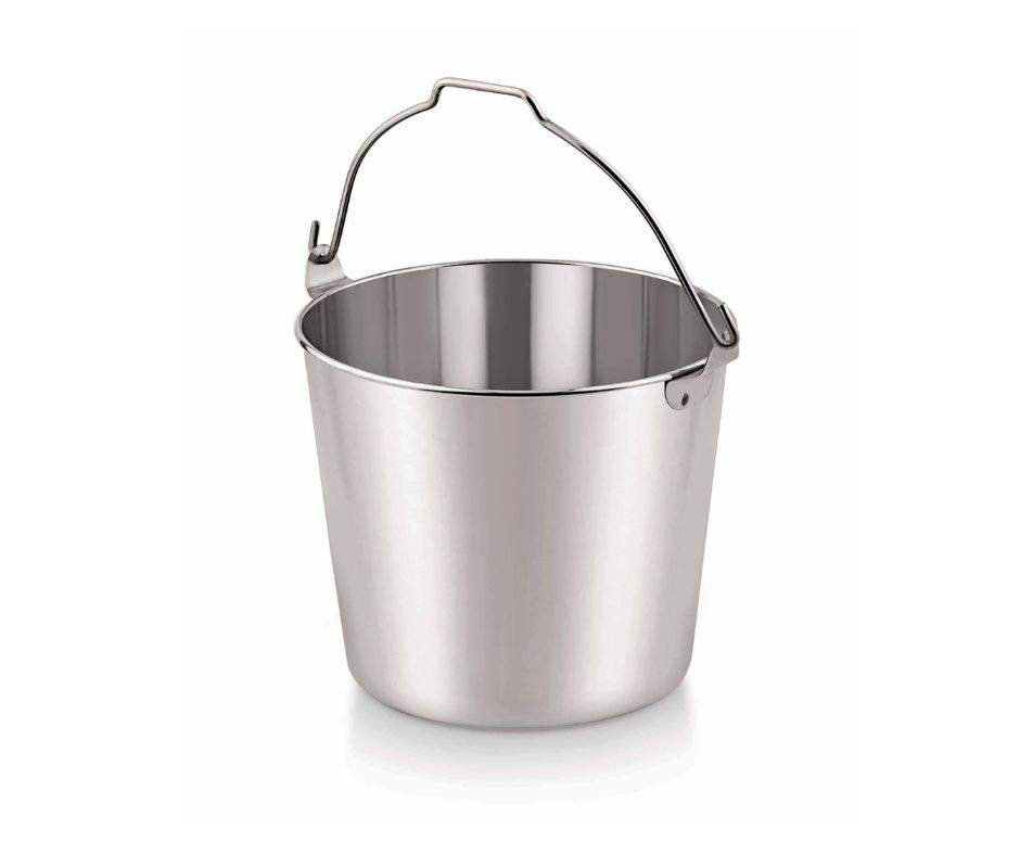 Seau utilitaire durable en acier inoxydable avec poignée suspendue, design fin, finition chromée polie miroir, écologique, pour usage domestique, 1-13QT