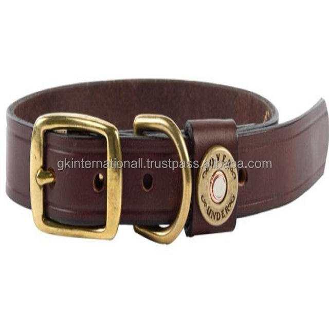 Collier pour chien en cuir marron à double épaisseur, fabriqué à la main et durable, avec quincaillerie en laiton réglable dans toutes les tailles personnalisées