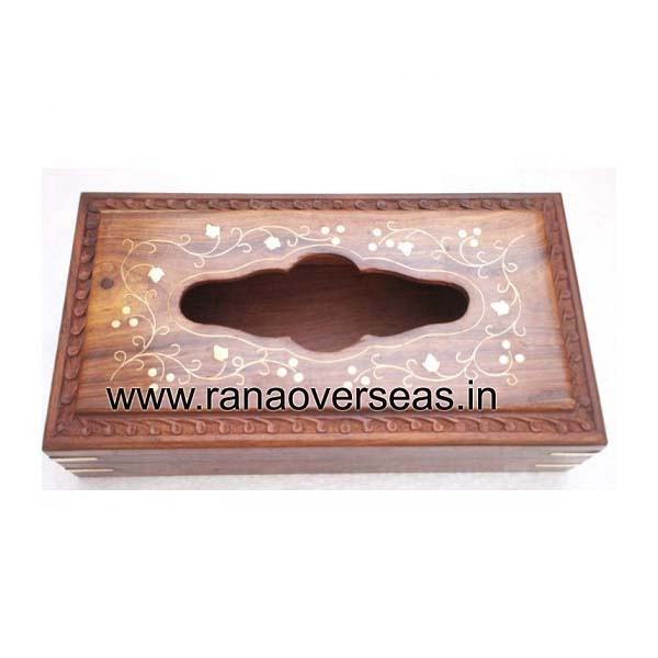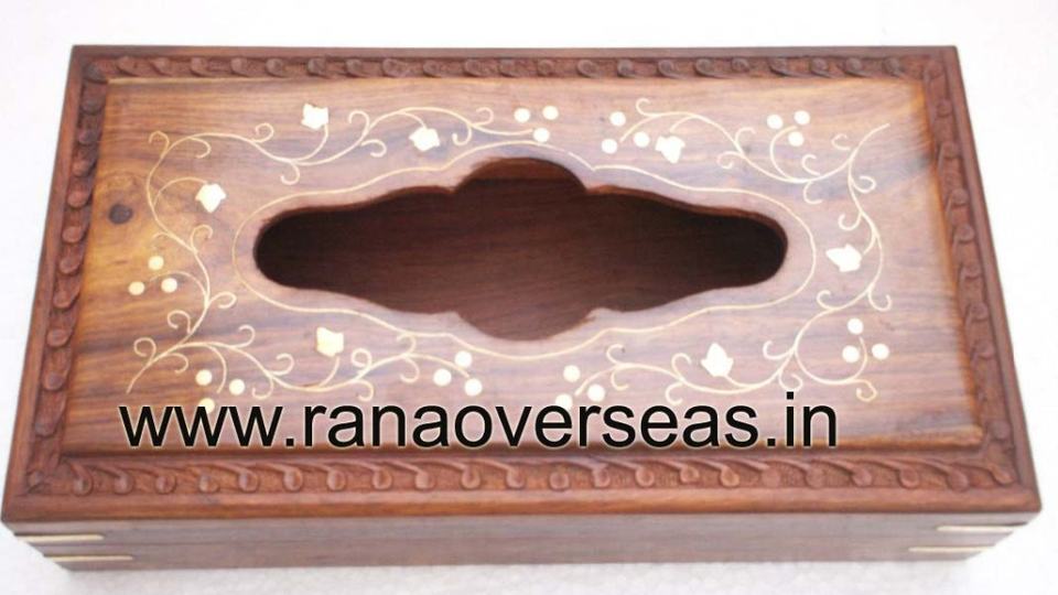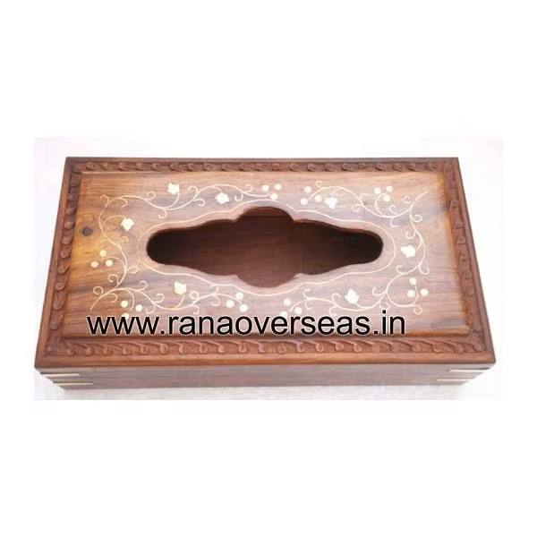 Name:Wooden Carved With Brass Inlay Tissue Box