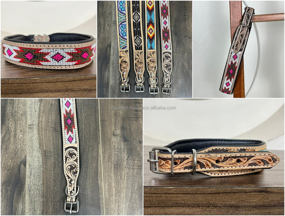 Product name:Hand Tooled Leather Beaded Pet Collar
