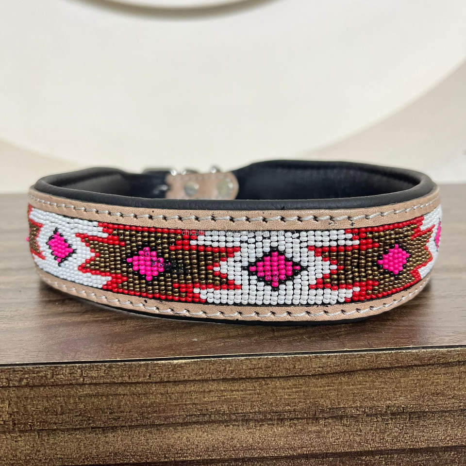Collier pour chien en cuir véritable de qualité supérieure, souple et confortable, de luxe, usiné à la main, collier perlé pour animal de compagnie