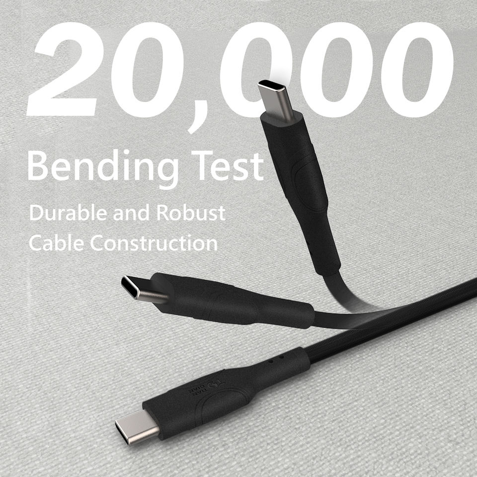 Câble de charge rapide Type-C 240W durable, tressé en cuivre pur, gaine en PVC, 0,3 m, certifié RoHS/FCC, pour ordinateur, Android/iOS mobile