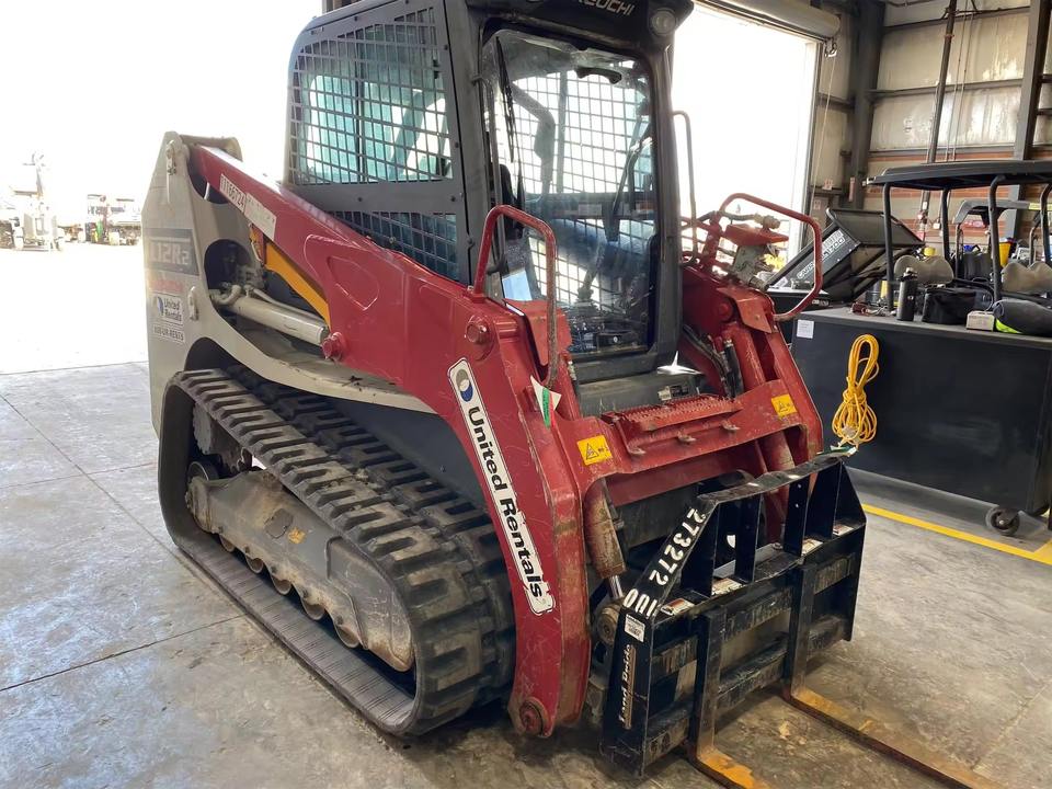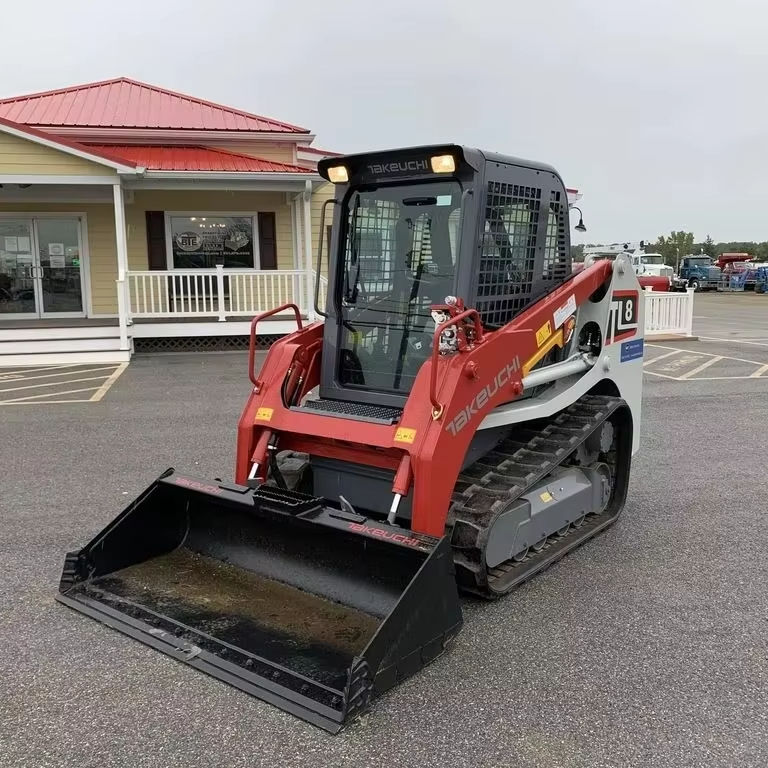 Chargeuse sur chenilles d'occasion robuste de 3 tonnes, jaune, avec flèche pivotante déportée et godet de grande capacité pour la préparation des terres agricoles