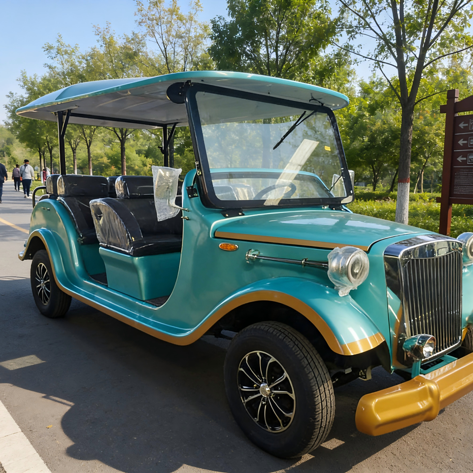 Voiture de golf électrique vintage 72V 5KW, buggy club classique 4 roues motrices 5-6 places, durable et économique