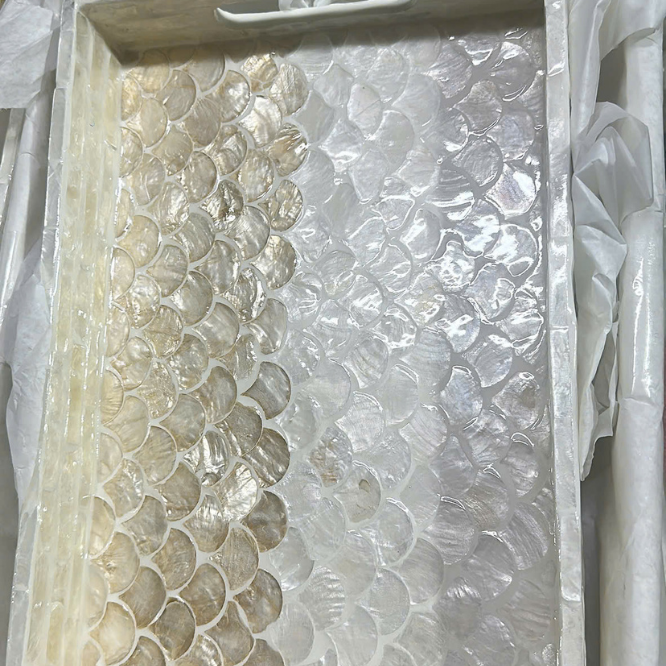 Plateau en rotin durable avec incrustation de nacre du Vietnam pour organiser des dîners et créer des ensembles esthétiques pour le thé