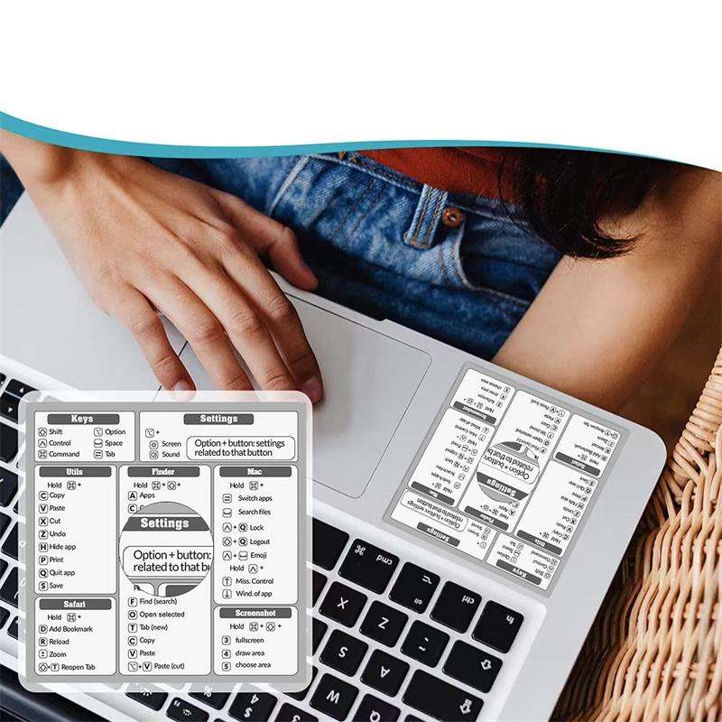 Adhésif temporaire en vinyle durable pour tout ordinateur portable ou de bureau Guide de référence de la feuille de triche Autocollant de raccourci clavier