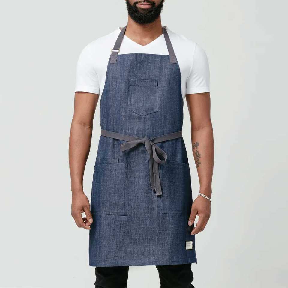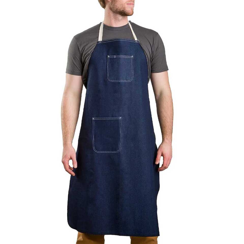 Tablier en denim solide fabriqué en usine, durable, article de chef, meilleur tissu en coton, logo personnalisé de haute qualité, unisexe, toutes tailles