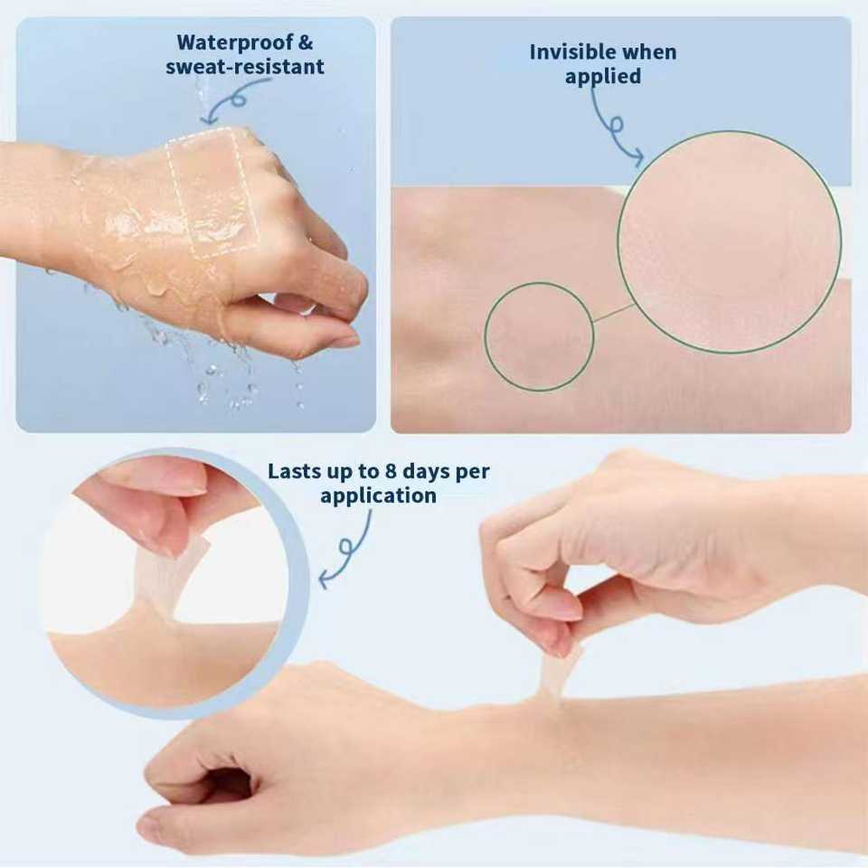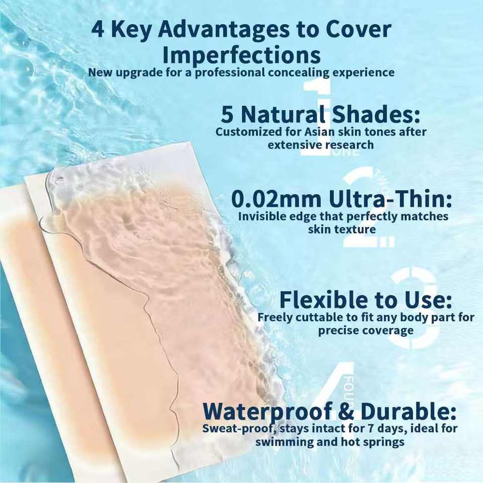 Autocollant de tatouage invisible en silicone durable activé par l'eau, imperméable, longue durée, fin, pour couvrir les cicatrices, les taches de naissance et les boutons d'acné