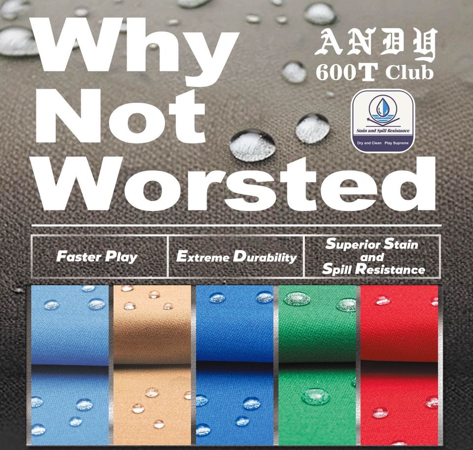 Tissu de remplacement pour table de billard Andy 600T Series 9FT, durable, imperméable, multicolore, tissu à vitesse rapide