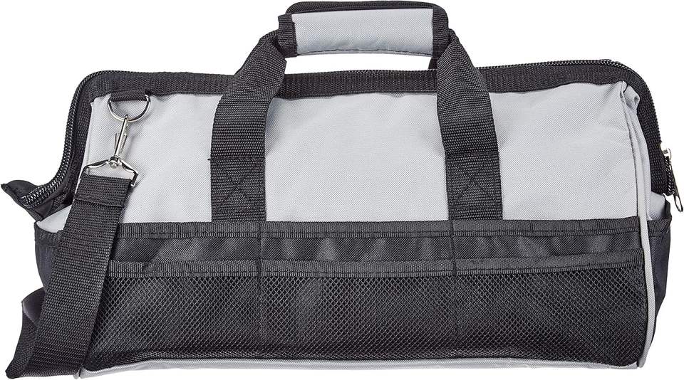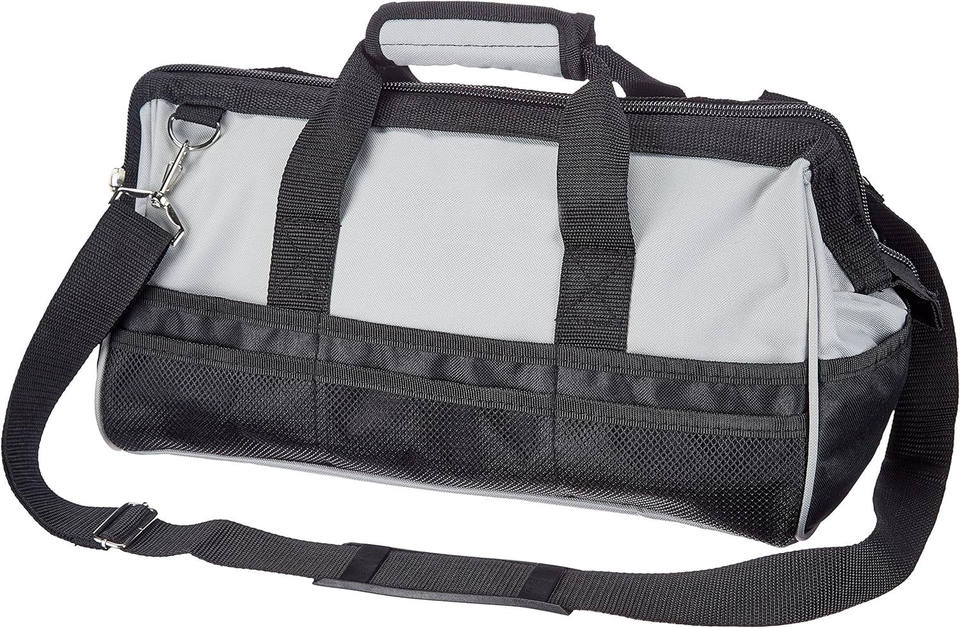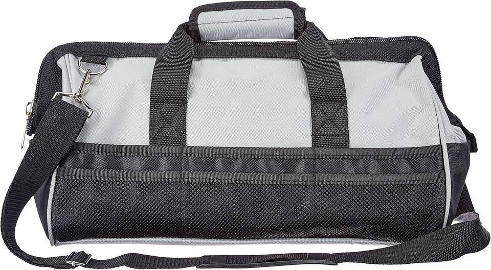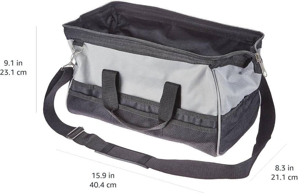 Sac de rangement pour outils durable et résistant à l'usure avec bandoulière réglable, organiseur d'outils portable 16 pouces noir et gris