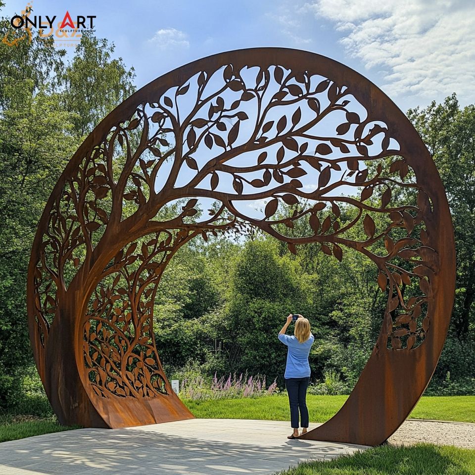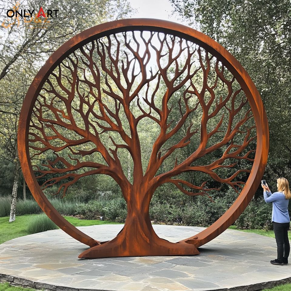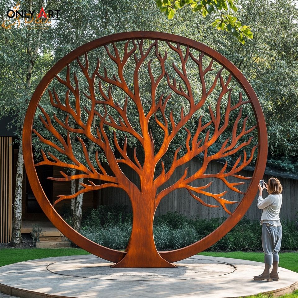 Décoration de jardin durable résistante aux intempéries et à la rouille à usage extérieur Sculpture en arbre corten abstrait artistique moderne personnalisée de grande taille