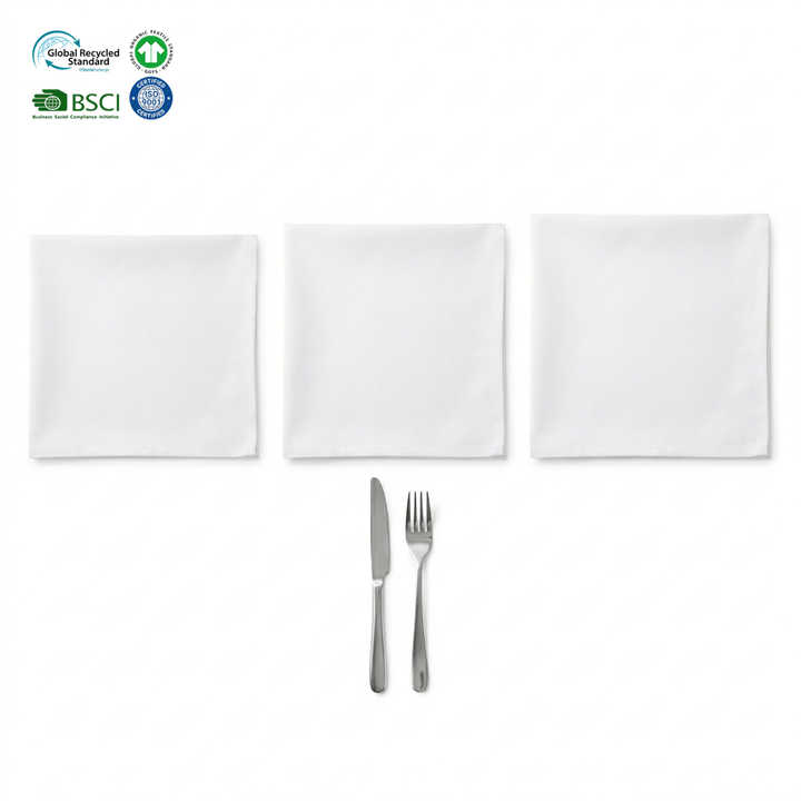 Serviettes en tissu durables blanches 18x18 pouces, imperméables, écologiques, à bords ourlés, en mélange de coton et de polyester, personnalisables pour les organisateurs d'événements