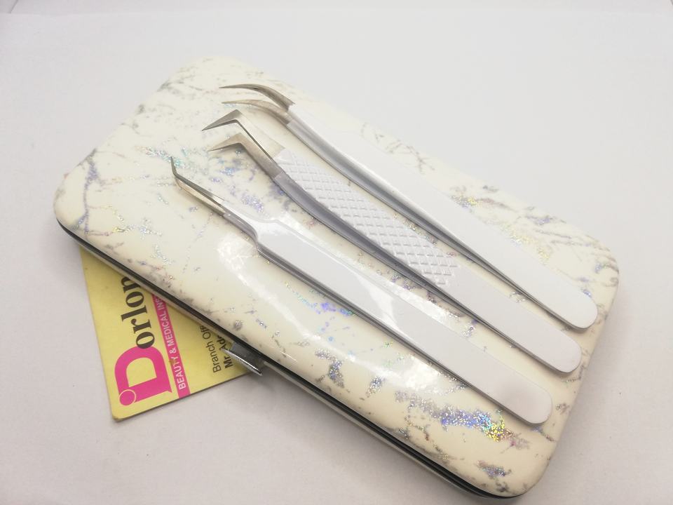 Pince à cils enduite de couleur blanche durable en acier inoxydable Logo privé Volume incurvé pince à épiler pour cils.