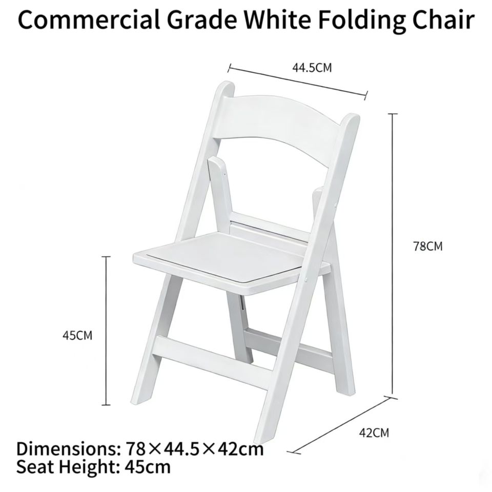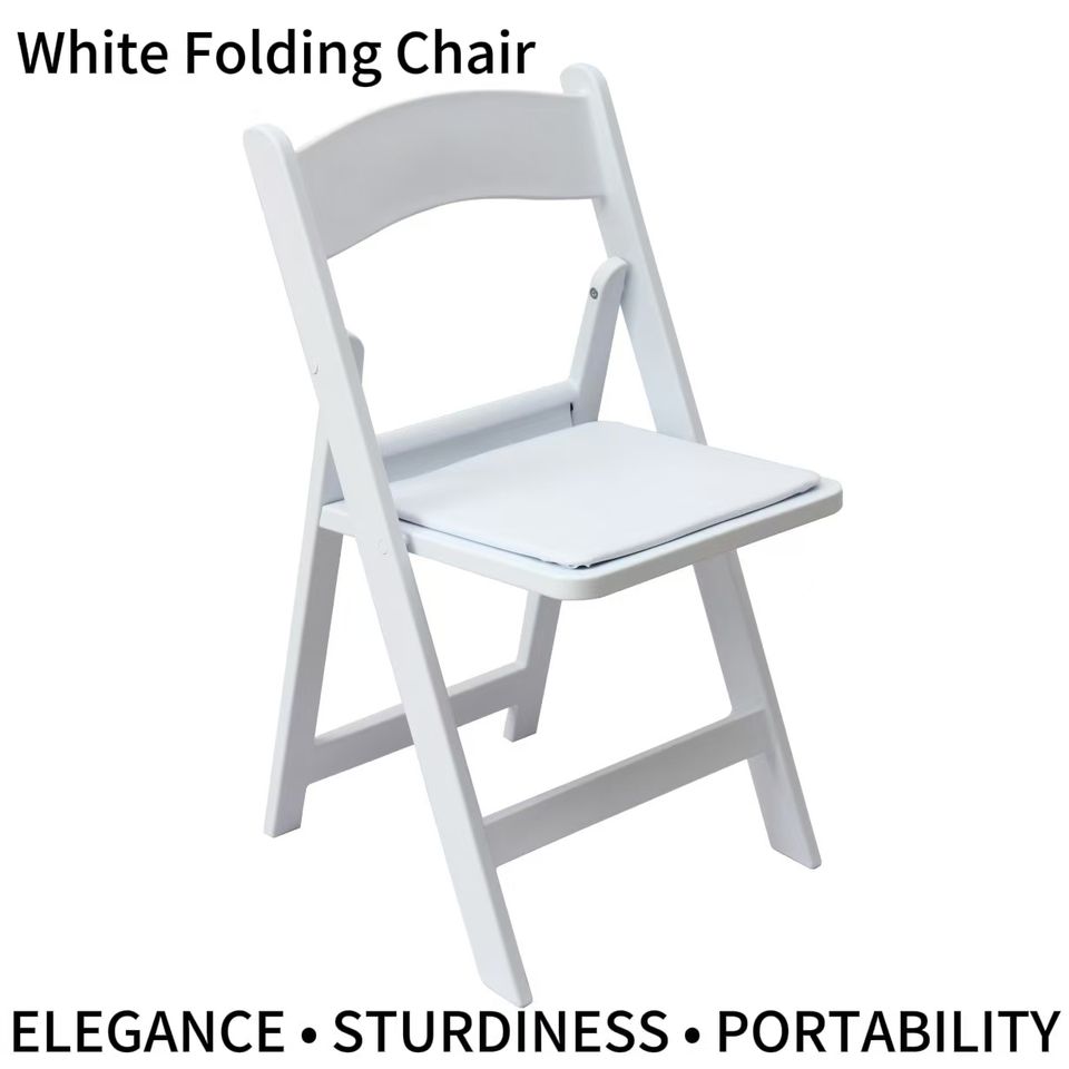Chaise pliante blanche durable résistante aux intempéries pour terrasse extérieure, camping et événements intérieurs