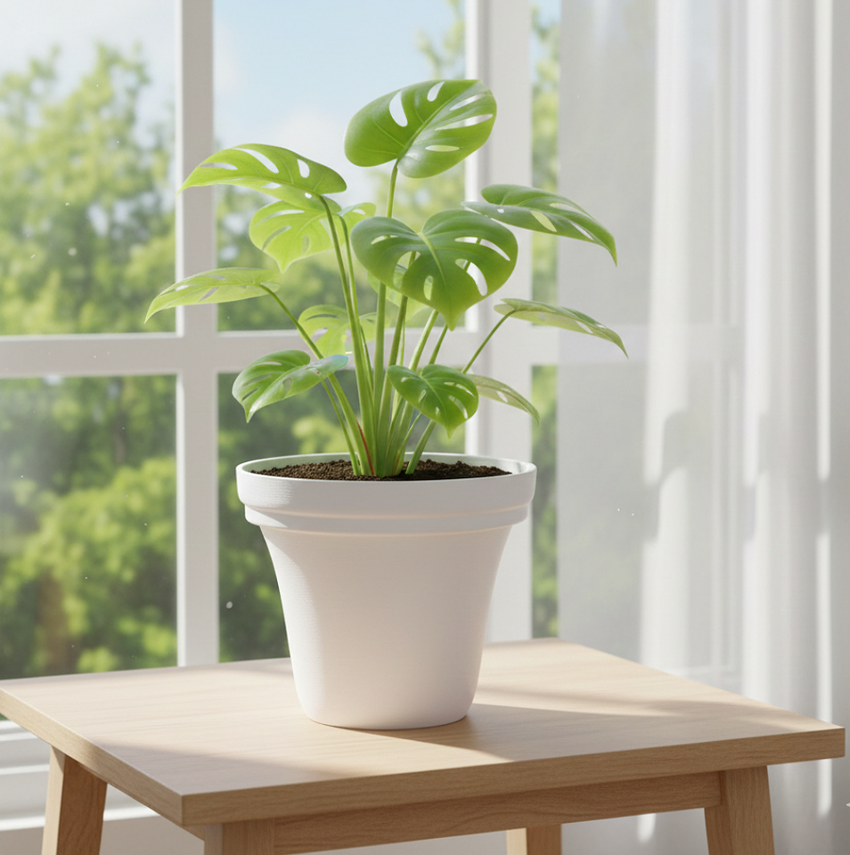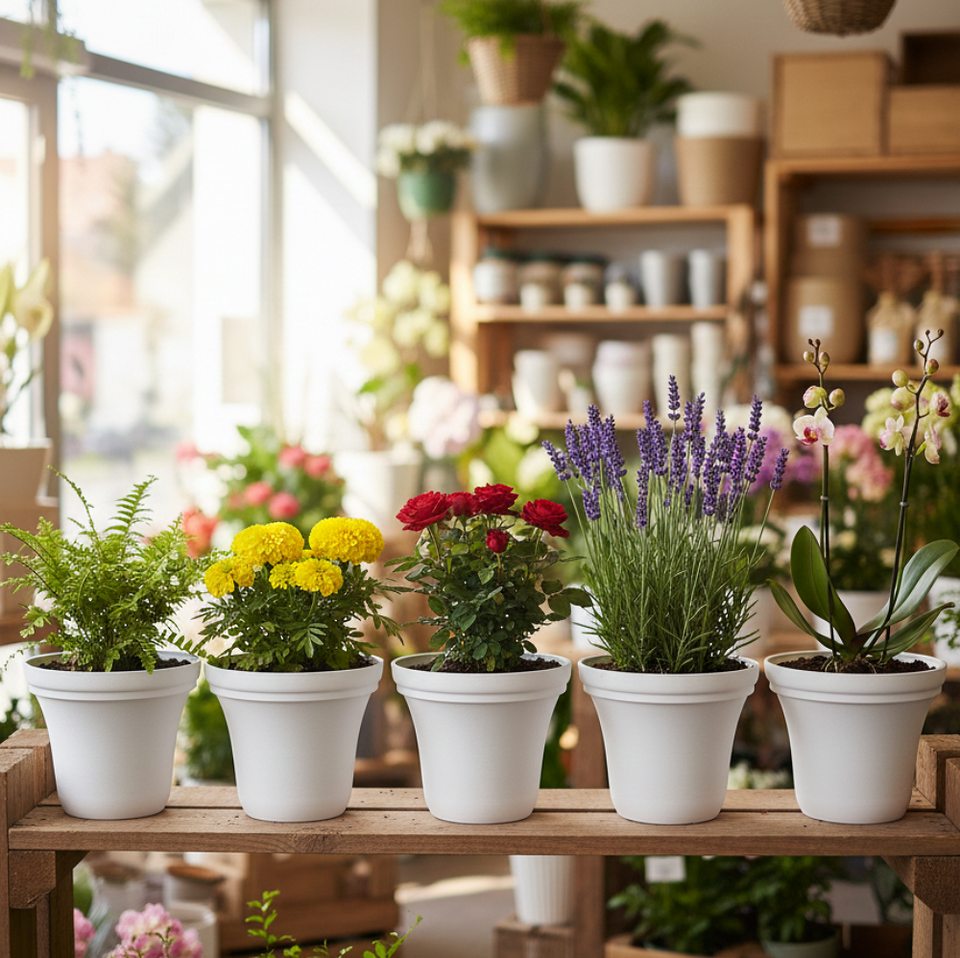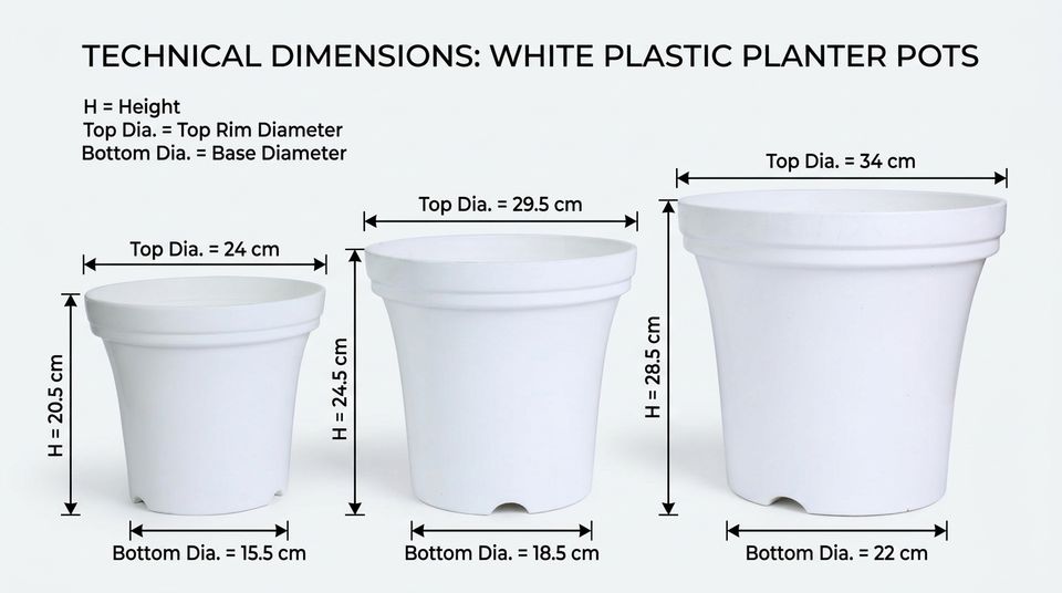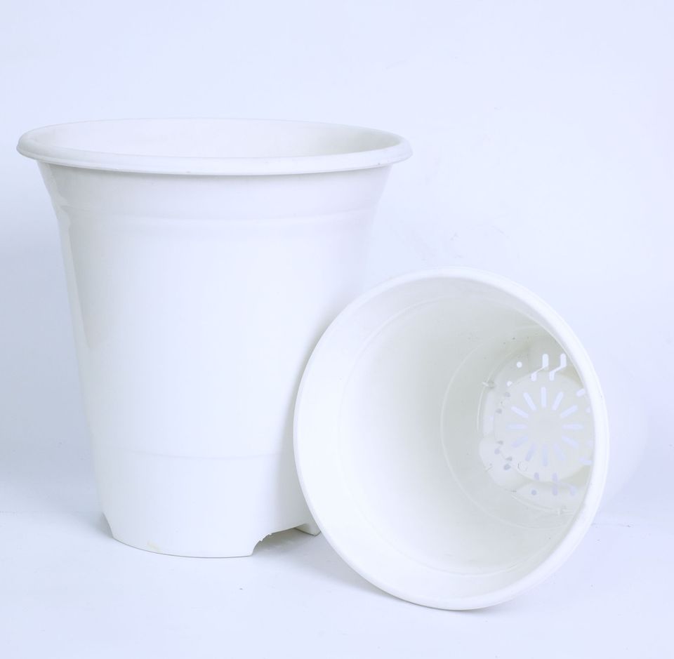 Pot de fleurs rond en plastique blanc durable, épaissi, avec trous de drainage pour plantes d'intérieur et d'extérieur, taille 29