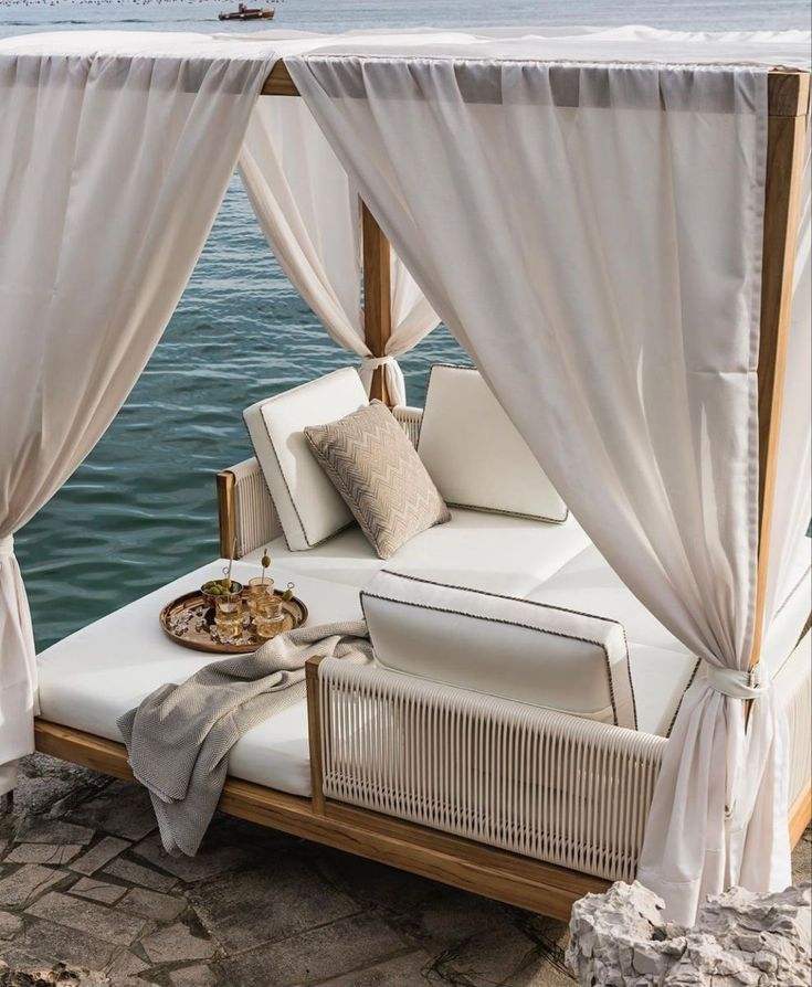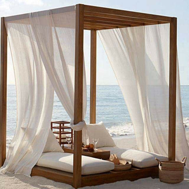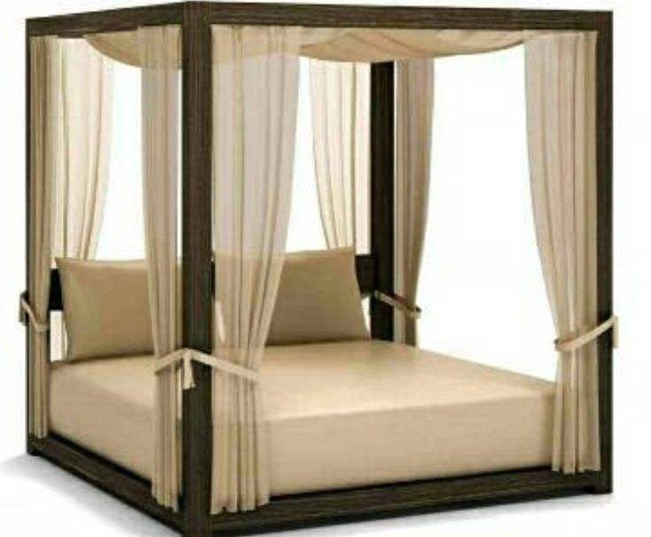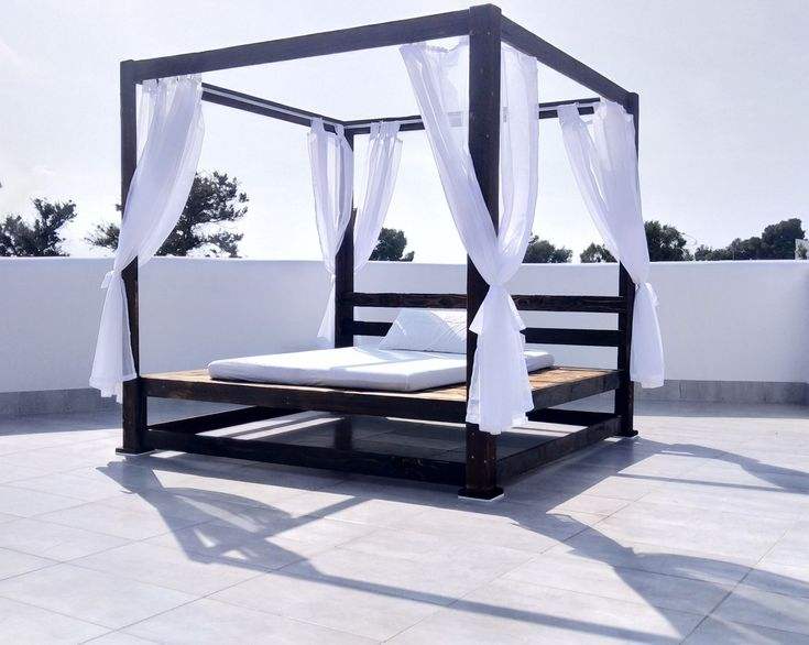 Lit à baldaquin quatre poteaux moderne en bois durable et tissu résistant aux intempéries, non gonflable et non pliable, pour terrasse, expédié via