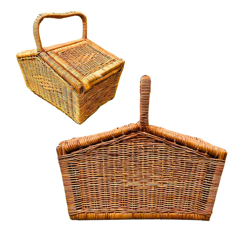 Panier de pique-nique en rotin à cadre en bois durable pour aventures en plein air du Vietnam Grand panier de récolte en osier léger