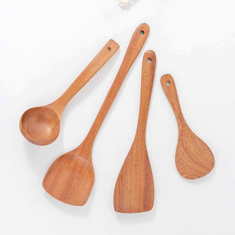 Ensemble de cuillères en bois durables avec spatule, louche, cuillère de service et cuillère à mélanger pour ustensiles de cuisine