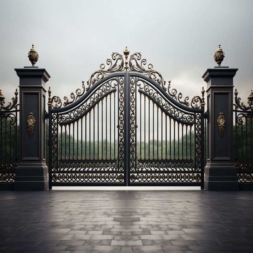 Durable Wrought Iron Garden Gates with Decorative Elements Handcrafted 3D Modeling for Secure Service