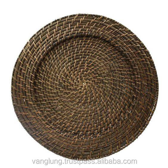 Durable and Eco Friendly Rattan Placemat Recessed/ Charger Plater/Wal Decoration for Wedding/ Dinning Table Dark colour