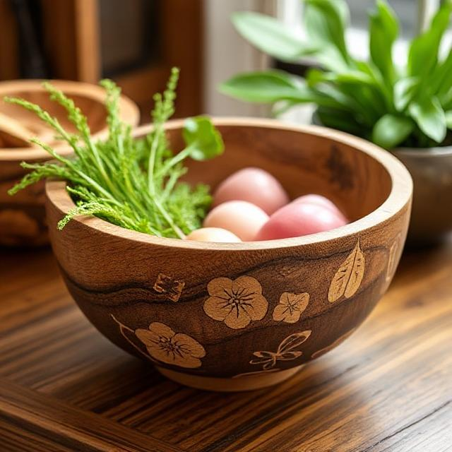 Bol de service en bois fait à la main durable et moderne avec élégant à la recherche de plats de service pâtes et utilisation quotidienne