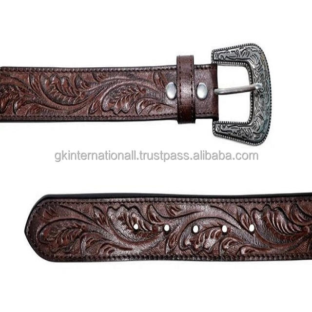 Ceinture d'outillage occidentale en cuir pour hommes, durable et confortable, boucle à ardillon unique en argent antique réglable avec relief floral