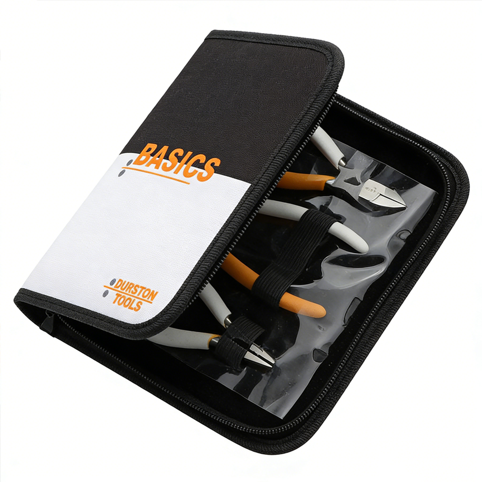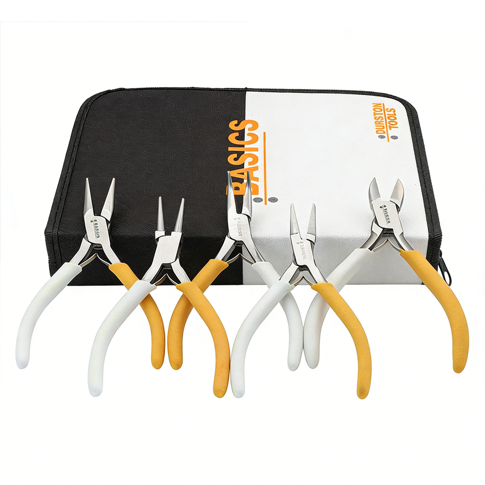 Durston Basics – ensemble de pinces compactes de 115 mm, 5 pièces, avec étui à fermeture éclair, pour débutants en fabrication de bijoux