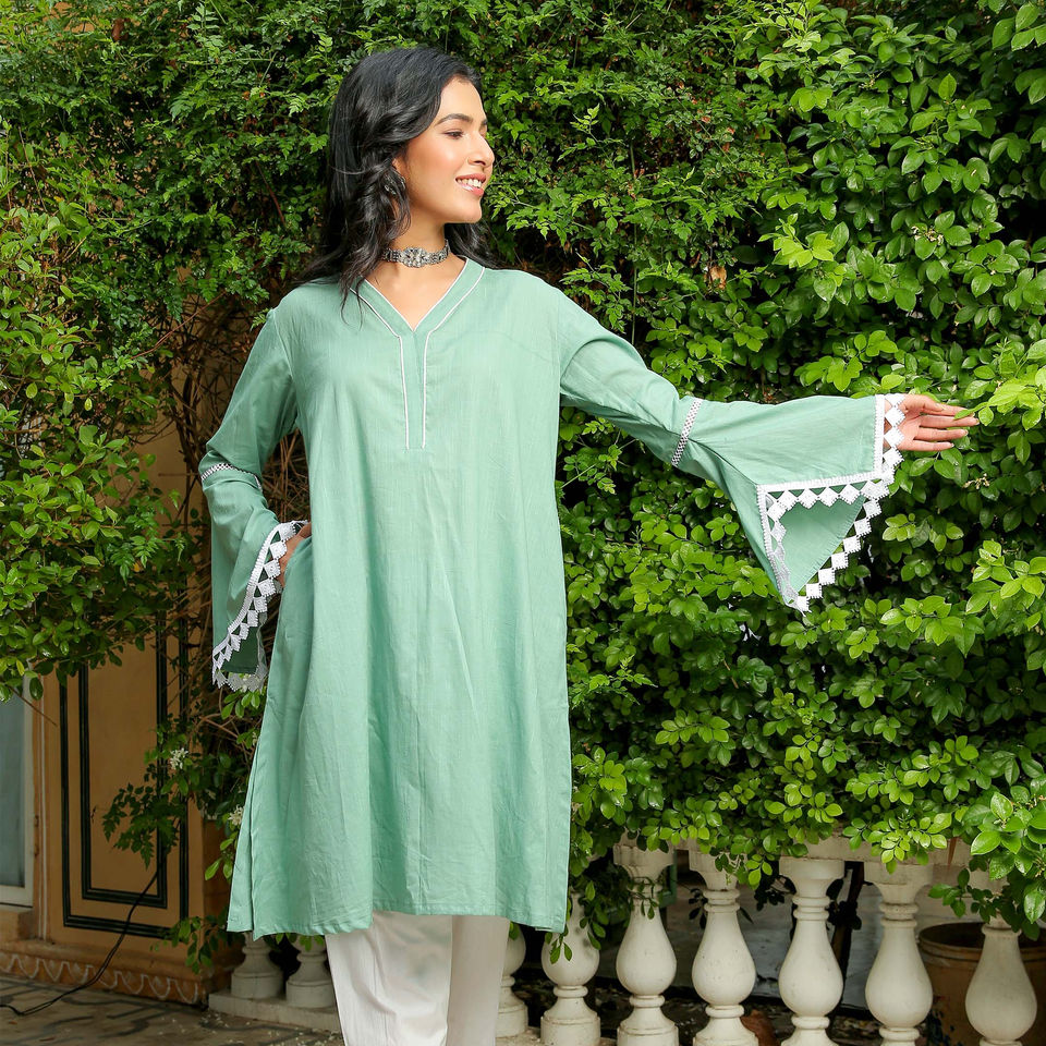Jade poussiéreux Kurta avec pantalon ensemble pour femmes et filles nouveauté été et printemps porter Co Ord ensemble pour les femmes au prix de gros
