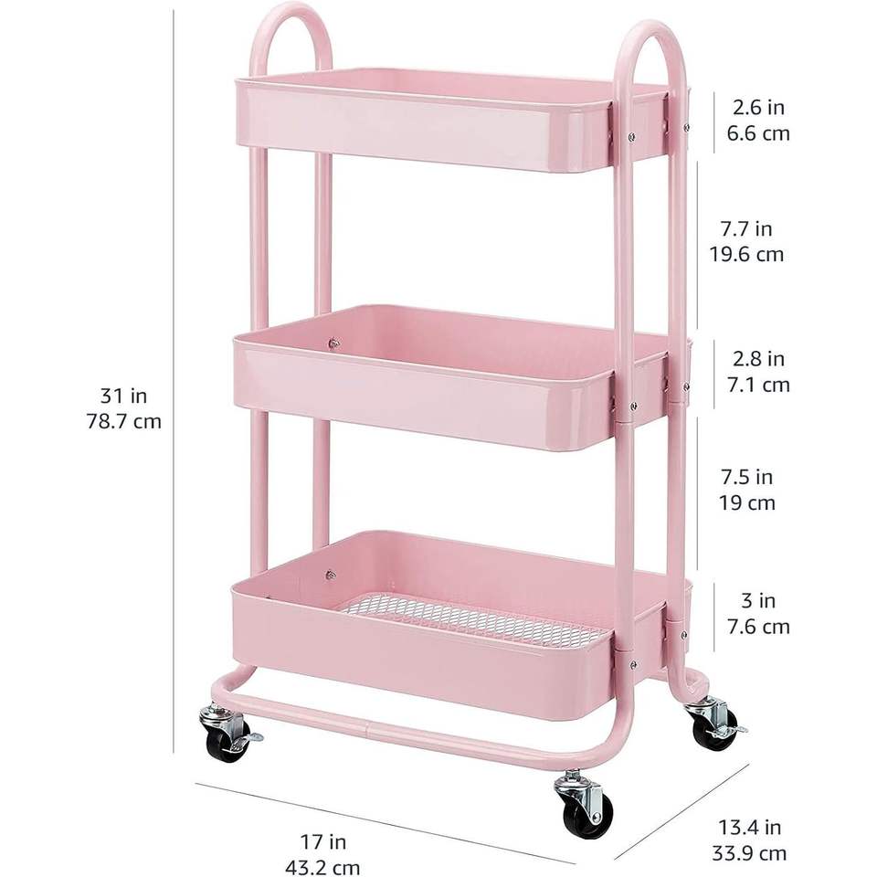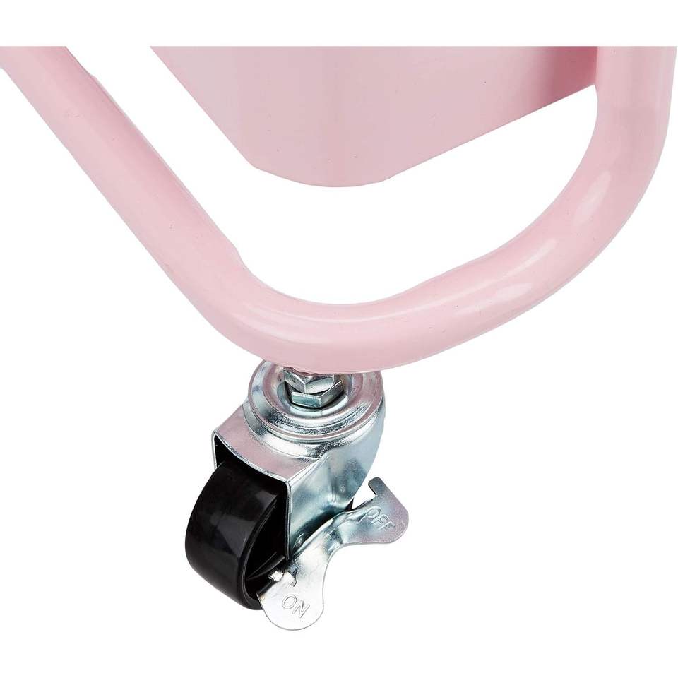 Chariot de cuisine roulant à 3 niveaux rose poudré, organisateur de rangement multifonctionnel en métal avec roues verrouillables, organisateur portable