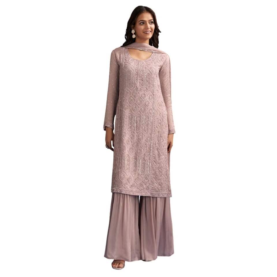 Costume Sharara brodé rose poussiéreux avec paillettes et Dupatta pour femme, fête de mariage traditionnelle et tenue de fête