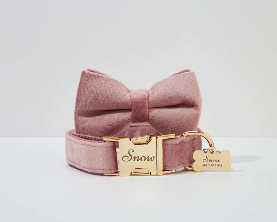Rose poussiéreux personnalisé avec quincaillerie dorée, collier et laisse de chien harnais fantaisie Veet pour grand petit chiot, livraison gratuite