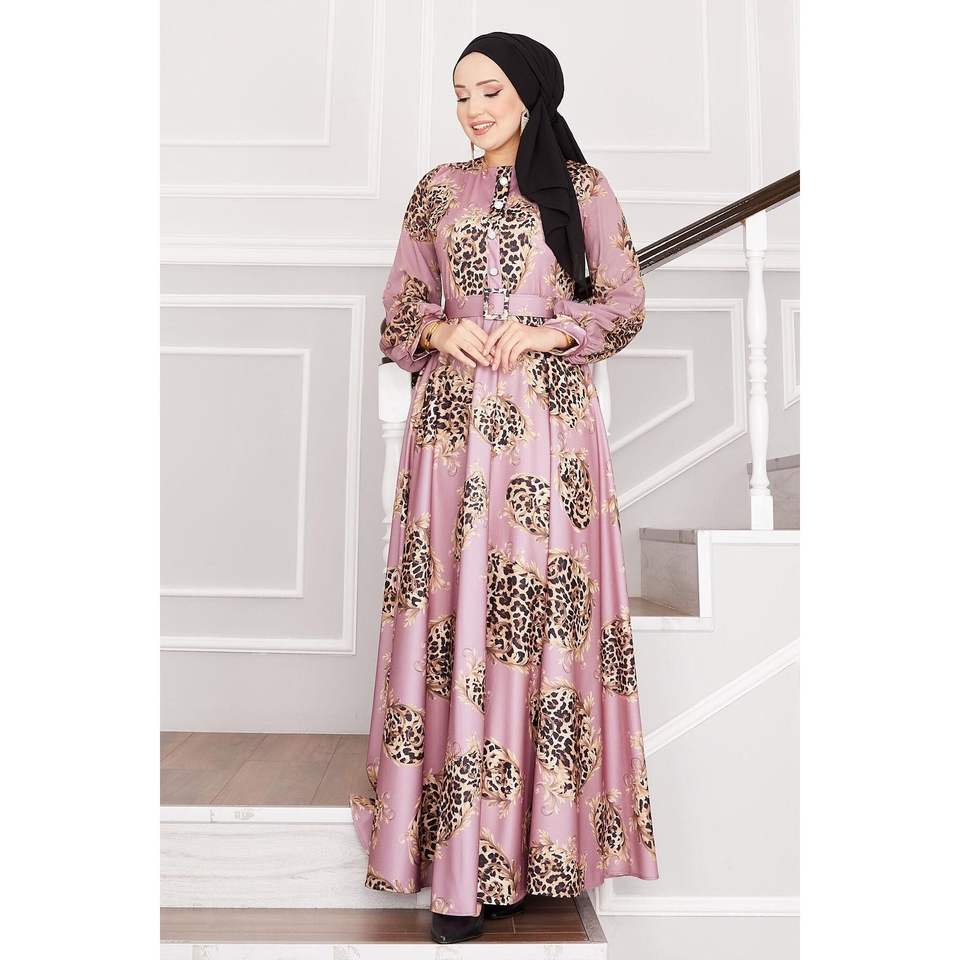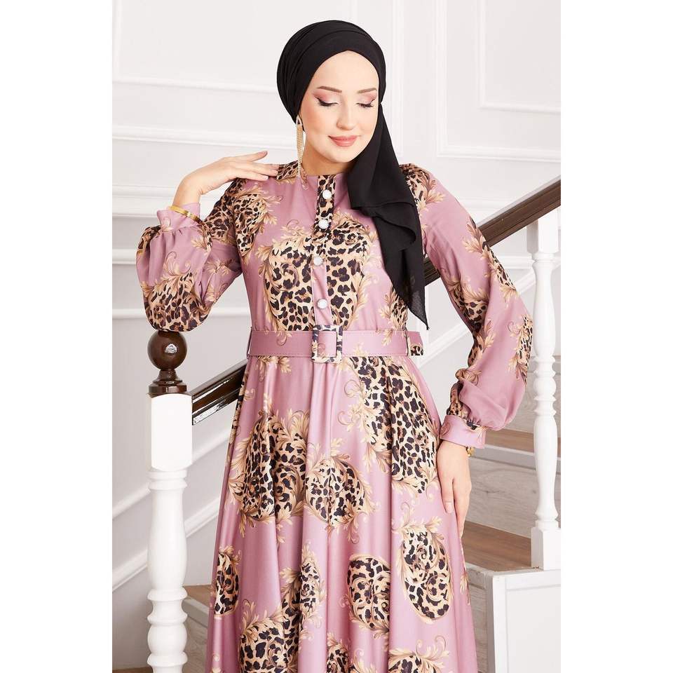 Dusty Rose Robe modeste avec détail léopard Hijab-Friendly Dusty Rose Style