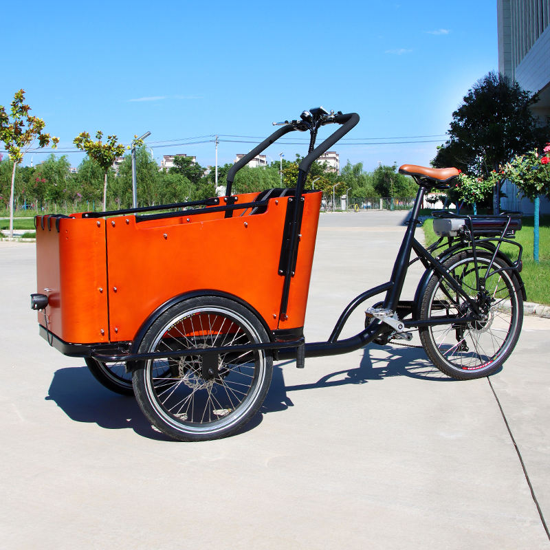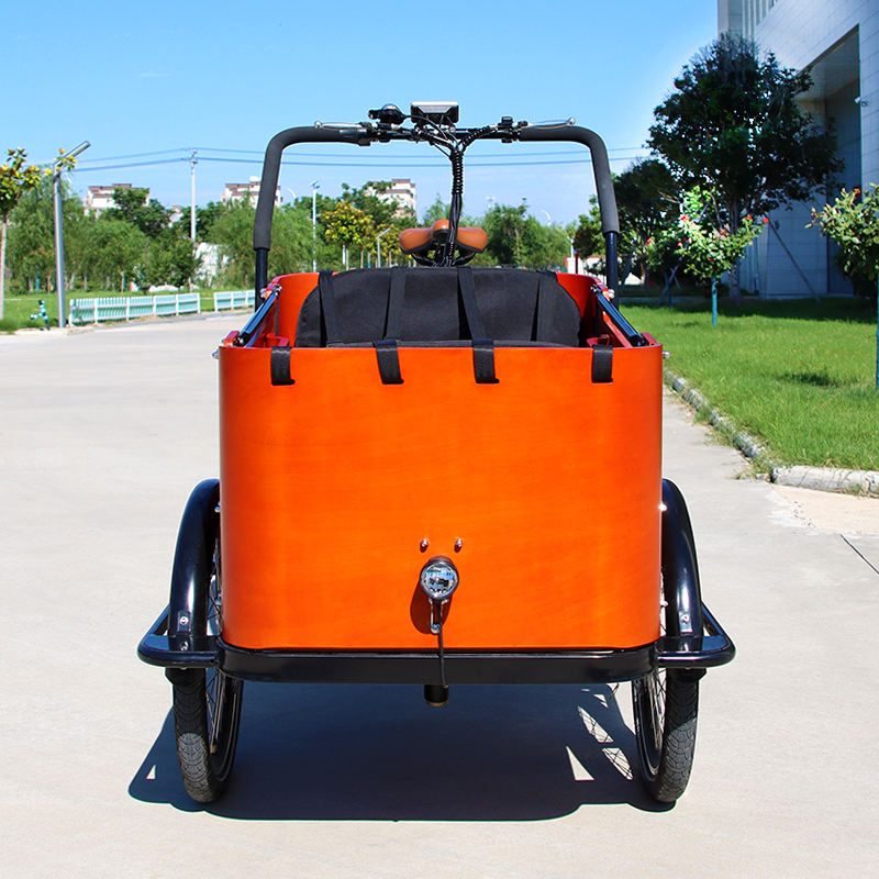 Vélo cargo familial hollandais à 3 roues, cadre de vélo électrique hollandais à 3 roues, vélo cargo pour enfants, trajet en ville avec housse de pluie, vélo électrique de ville