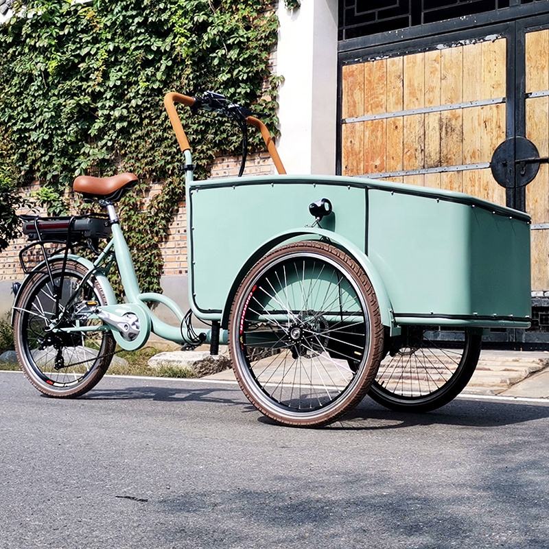 Vélo cargo hollandais populaire à 3 roues, tricycle électrique Bakfiets avec chariot