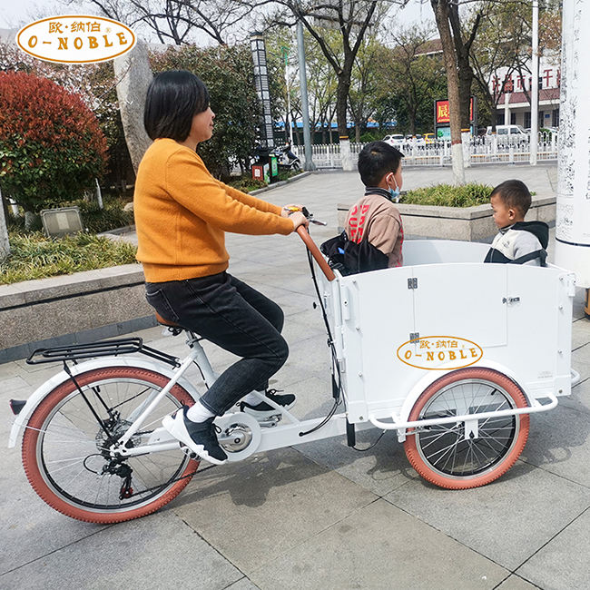Tricycle électrique de style hollandais avec fourche en alliage d'aluminium, 6 vitesses, roues de 24 pouces, capacité de charge de 300 kg pour bébé