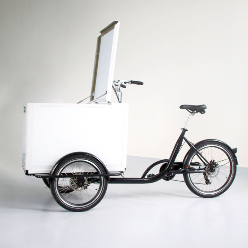 Trike néerlandais boîte avant e-bike JG Gastro café vélo jus de fruits vente tricycle bière vélo 3 roues électrique cargo vélo livraison rapide