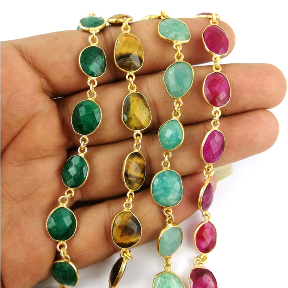 Dyed Ruby Gemstone Bezel Set Connector Chain 12-16mm Gemstone Bezel Brass Connector Free Form Shape Gemstone Connector