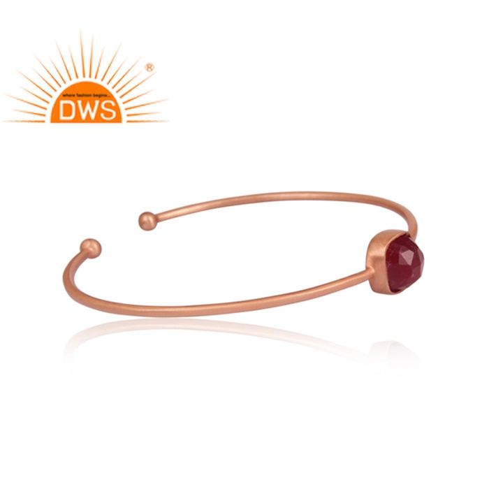 Teint Rubis Pierres Précieuses Empilable Bracelet 18k Or Rose Plaqué 925 En Argent Sterling Opérable Manchette Bracelet Bijoux Fabricant