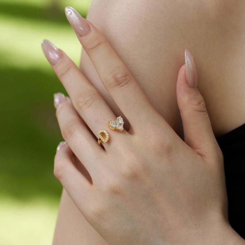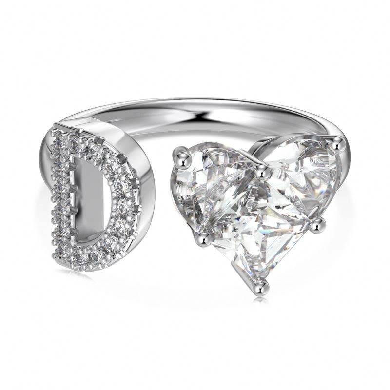 Bagues initiales Dylam D pour femmes, anneaux épais et imposants avec lettre en CZ 5A, anneau cœur d'amour, bagues ouvertes empilables pour femmes, initiales A-Z