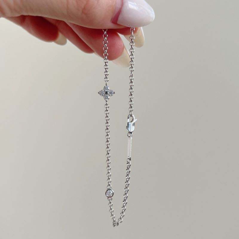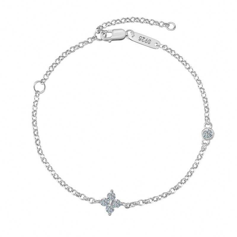 Dylam Timeless Collection Fine Top S925 Silver D Color VVS1 Clarity Moissanite Stone Four Leaf Clover Lucky Pendant Bracelets