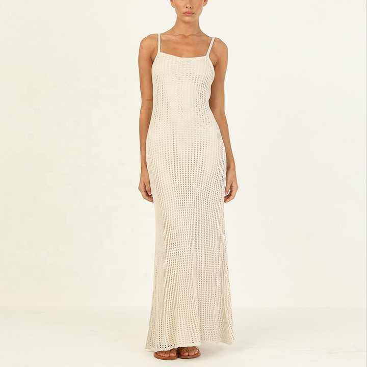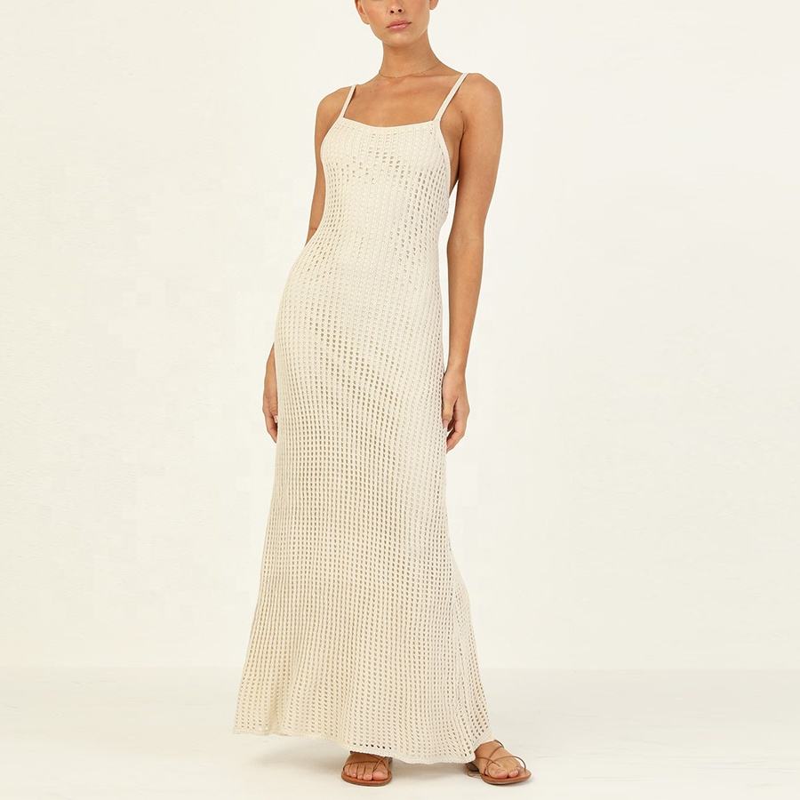 Robe longue à bretelles réglables en tricot élastique, confortable, dos nu