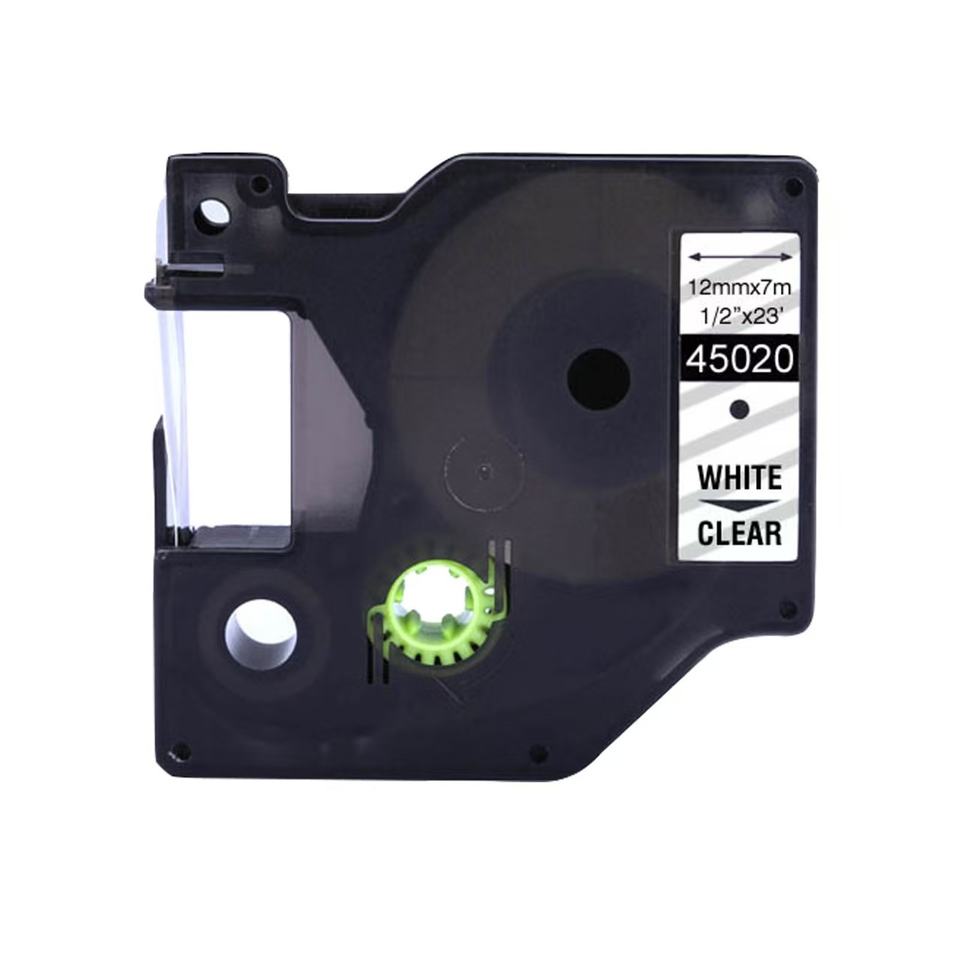 Ruban Dymo D1 12 mm compatible avec le papier d'impression 9 mm x 7 m, base blanche, lettres noires, ruban adhésif 45013