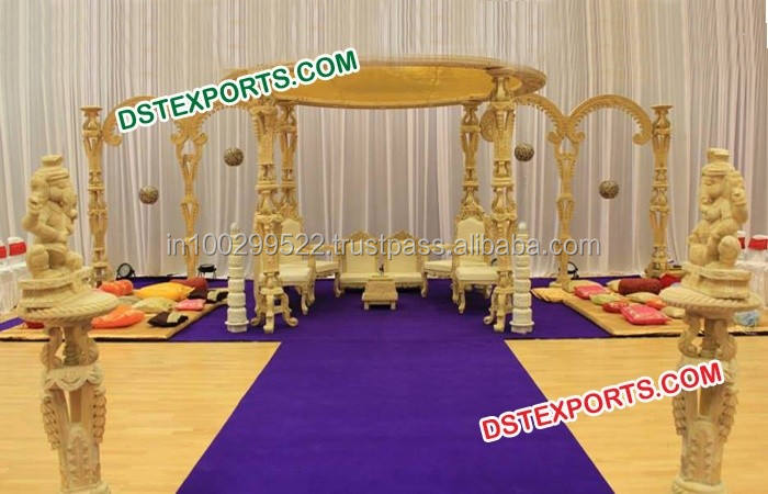 Mandap en bois pour mariage dynamique, ensemble de mandap en bois sculpté pour mariage hindou, fabricant de mandap pour mariage indien, décoration d'événements aux États-Unis