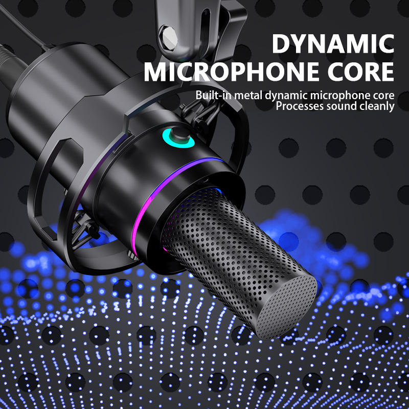 Fonction:Réduction de bruit, Léger, Microphone à condensateur, Avec éclairage RVB, Avec Carte Son, Portable