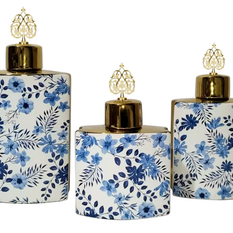 Ensemble de pots en céramique de style dynastique avec filigranes dorés et résistance aux hautes températures pour la décoration traditionnelle mondiale